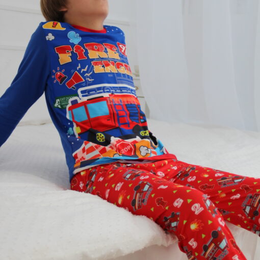 Пижама на мальчика с пожарной машиной это прекрасный способ пробудить в ребёнке мужество и гордость профессии.