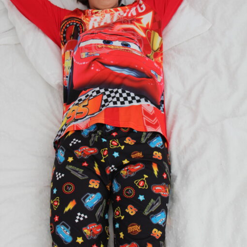 Очаровательная пижама с изображением Молнии Маквина из мультфильма «Тачки» приносит в ваш дом динамичный красный вихрь. Этот оттенок несет в себе энергию и яркость, создавая настоящий огонь страсти и приключений.
