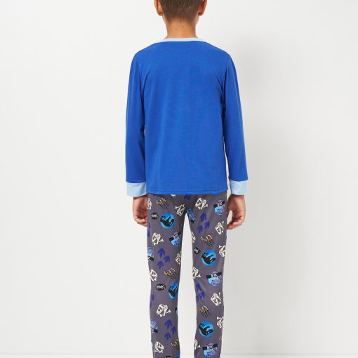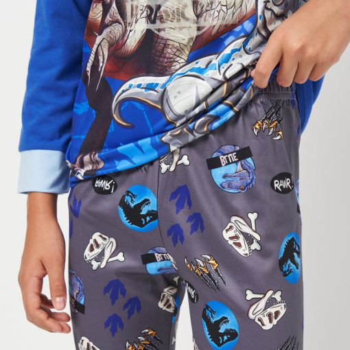 Яркий синий цвет придает пижаме энергии и динамичности. Динозавры на фоне сияющего синего создают невероятно привлекательный облик для вашего маленького исследователя.