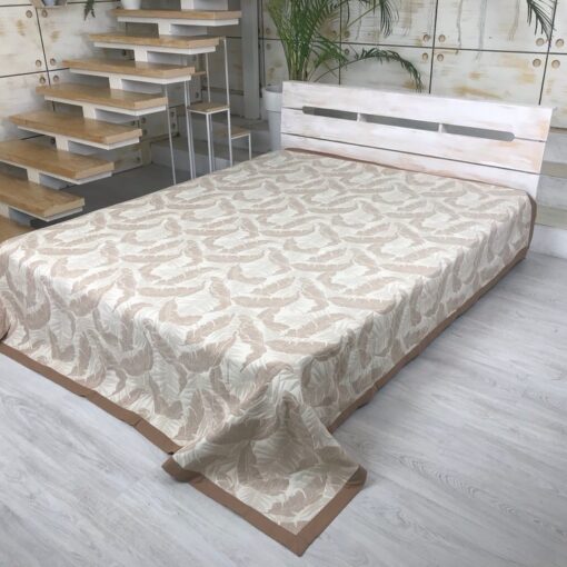 Покрывало Пальмовый принт бежевый, жаккард, двухстороннее