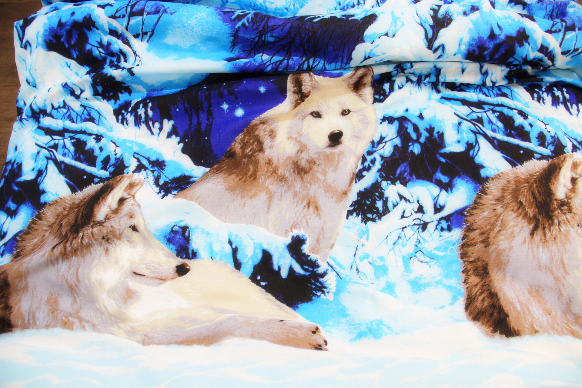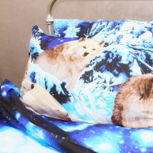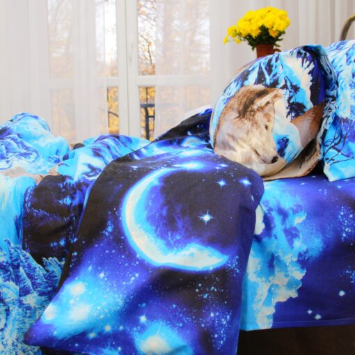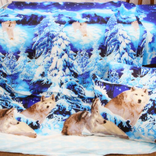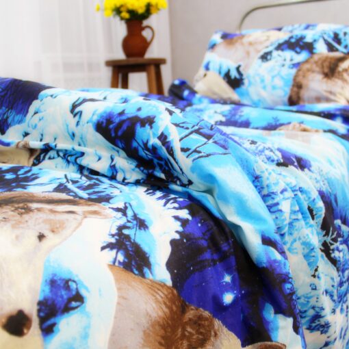 Постельное белье бязь Волки 3Д голубого цвета