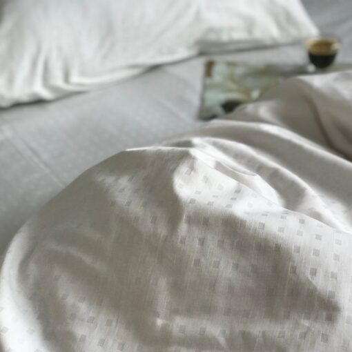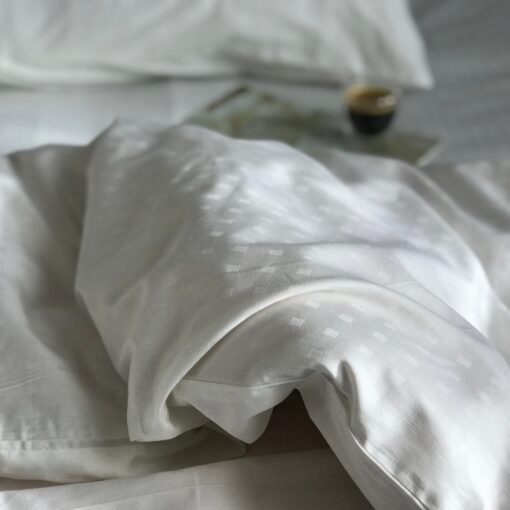 Постельное белье из сатина Жаккард белого цвета клеточка евро 50х70 см