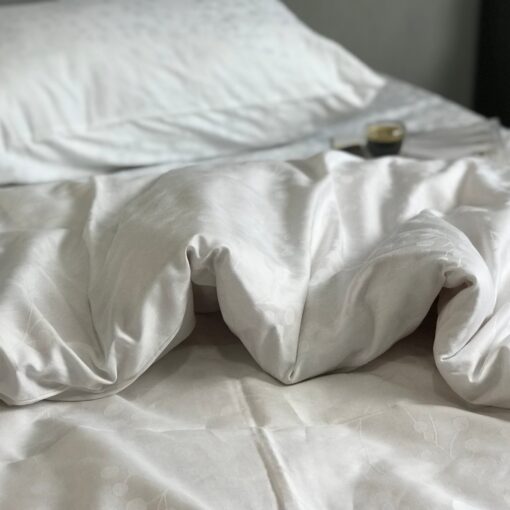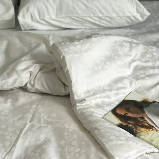 Постельное белье из сатина Жаккард белого цвета, веточка