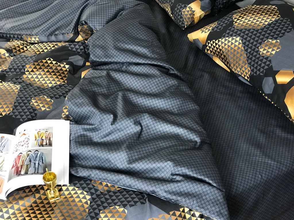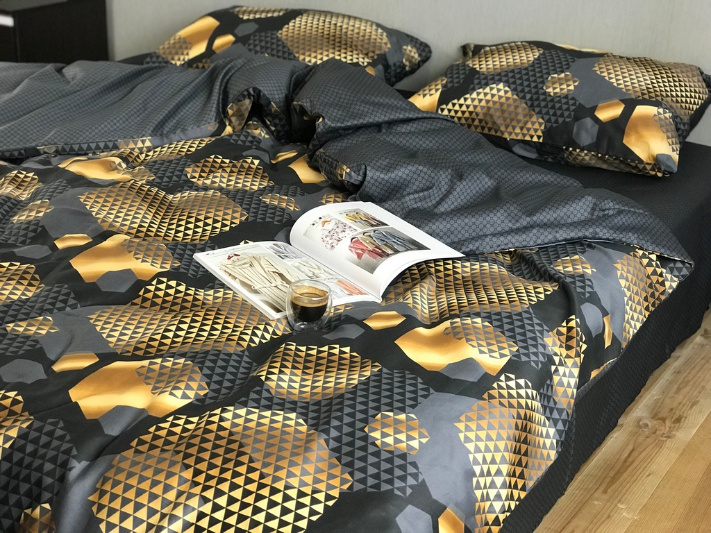 Постельное белье Альберт, золото и графит сатин люкс