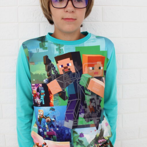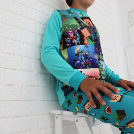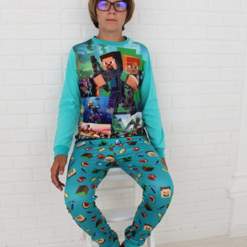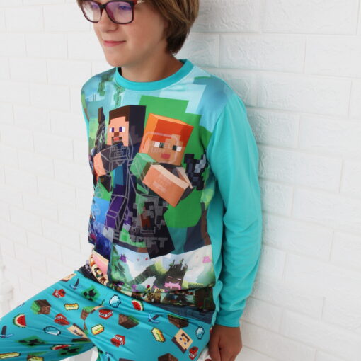 Окунитесь в мир Minecraft вместе с вашим мальчиком благодаря удивительной бирюзовой пижаме. Яркий и насыщенный цвет создает атмосферу волшебства и заставляет каждый вечер становиться настоящим приключением.